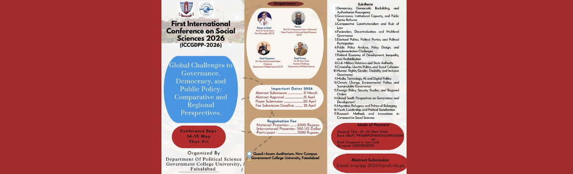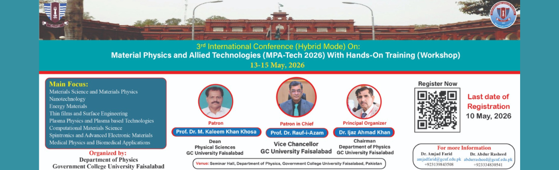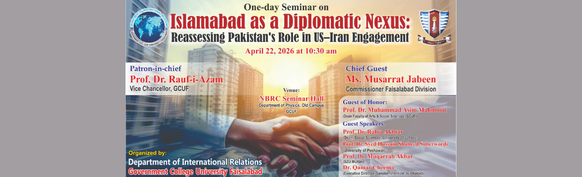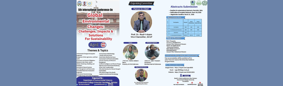 In the 21st century, the role of a university is more critical and demanding than ever before. A university must serve as a model of education that not only imparts knowledge but also nurtures responsible youth, capable of addressing the challenges faced by our nation and the world. It should foster an academic environment that emphasizes quality research, embraces modern technologies, and encourages innovation to cultivate strong, capable, and creative minds. At Government College University, Faisalabad, I am dedicated to advancing this mission and further strengthening our position as a dynamic hub of learning and innovation. Together, with the commitment of our faculty, staff, and students, we will continue to build an institution that inspires excellence, promotes discovery, and prepares future leaders to make a meaningful impact on society.
