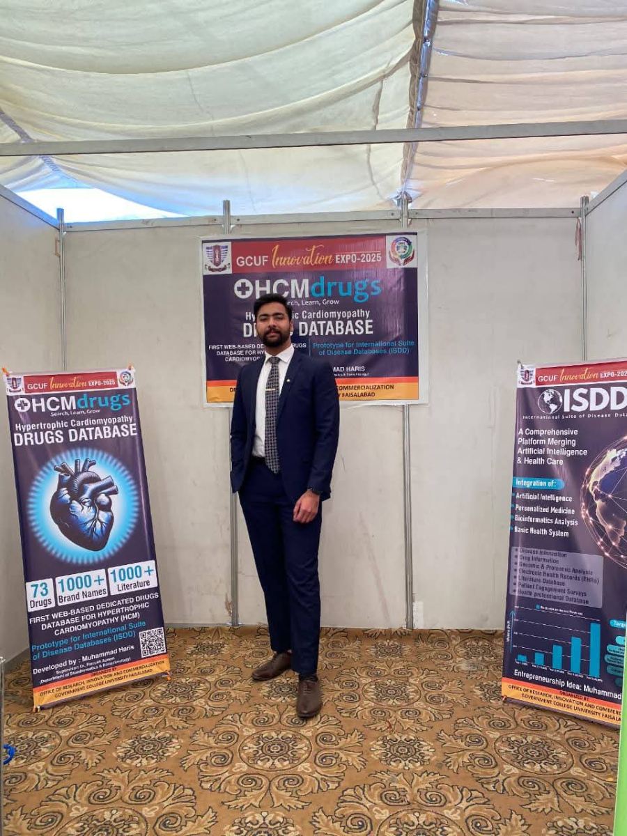We are proud to highlight the achievement of our talented undergraduate researcher, Muhammad Haris (BS Biotechnology), under the supervision of Dr. Farrukh Azeem (Associate Professor, Department of Bioinformatics and Biotechnology, Deputy Director Career Counseling and Alumni), who has developed HCMdrugs – a specialized database dedicated to Hypertrophic Cardiomyopathy (HCM), a life-threatening genetic heart disorder.