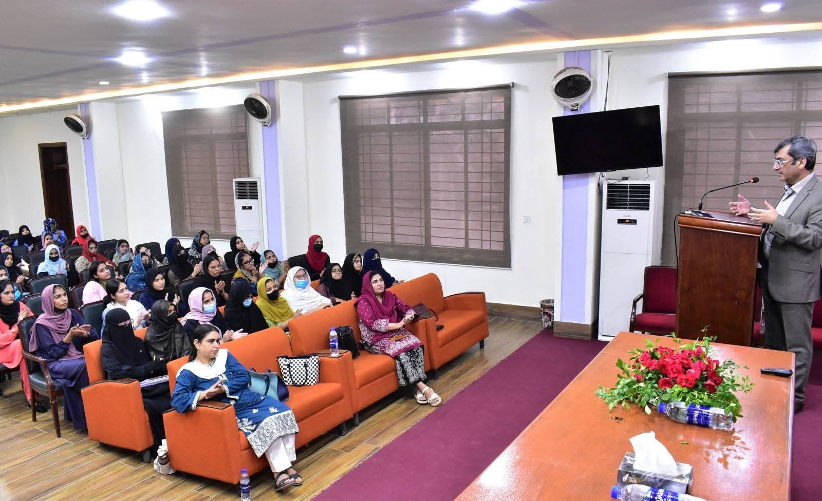 In this regard, Dr. Sadaf Mahmood, Chairperson, Department of Sociology, University of Agriculture, Ms. Kiran Rabbani from the Department of English, and Prof. Dr. Zahra Batool, In-charge Women Development Centre, delivered impactful lectures. They guided the students on the appropriate use of words, confidence building, and effective emotional expression.