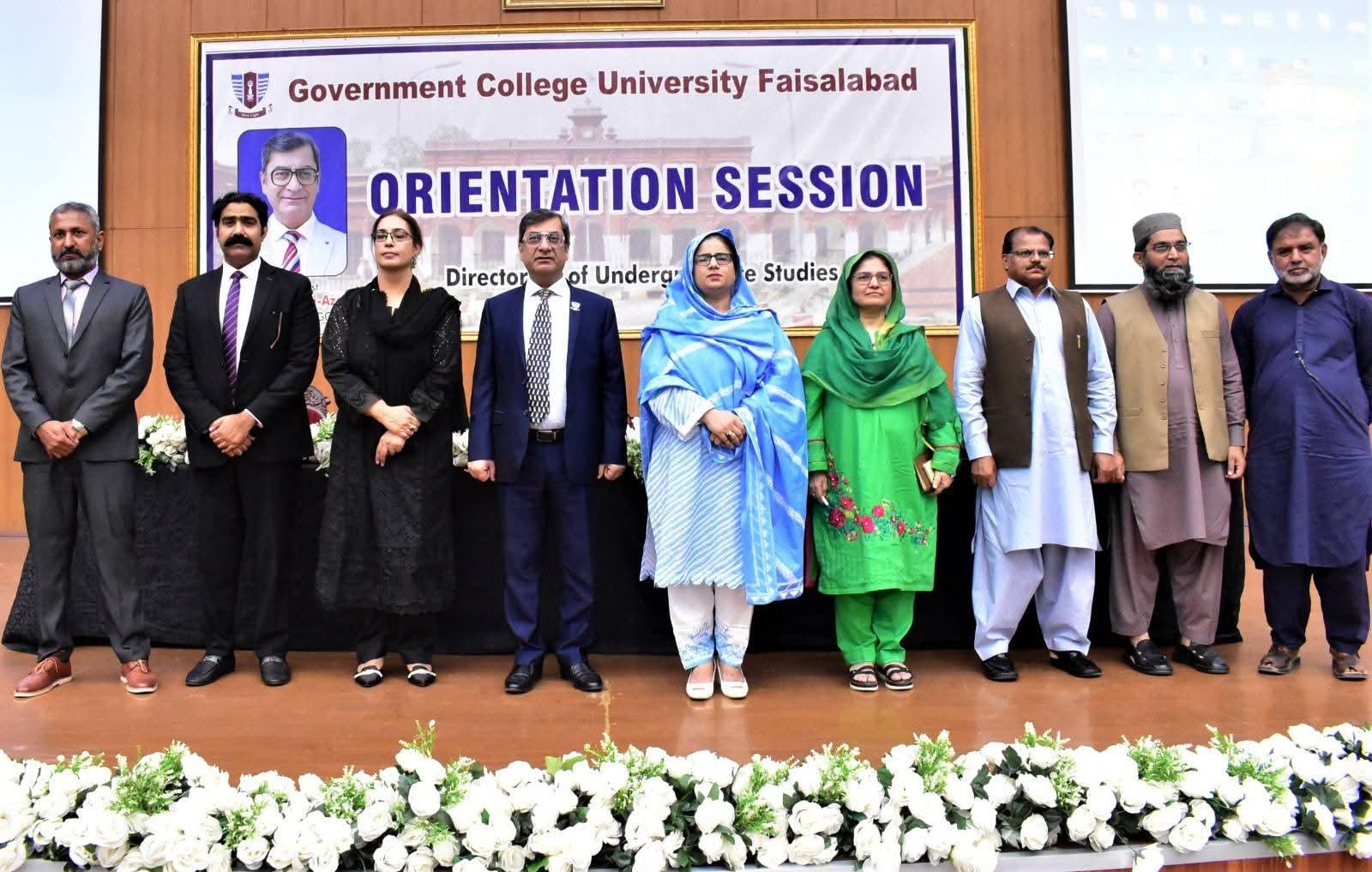 Government College University Faisalabad organized a grand orientation session for newly admitted students of BS programs at the Quaid-e-Azam Auditorium, New Campus. The event aimed to familiarize new entrants with the university’s academic environment, rules and regulations, facilities, and departmental structure.