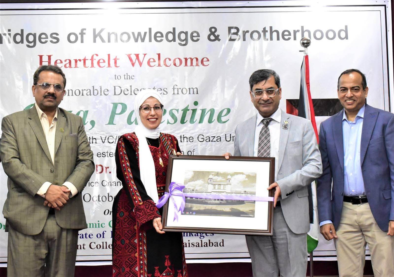 A delegation comprising vice chancellors, rectors and faculty members from universities in Gaza, Palestine, visited Government College University Faisalabad