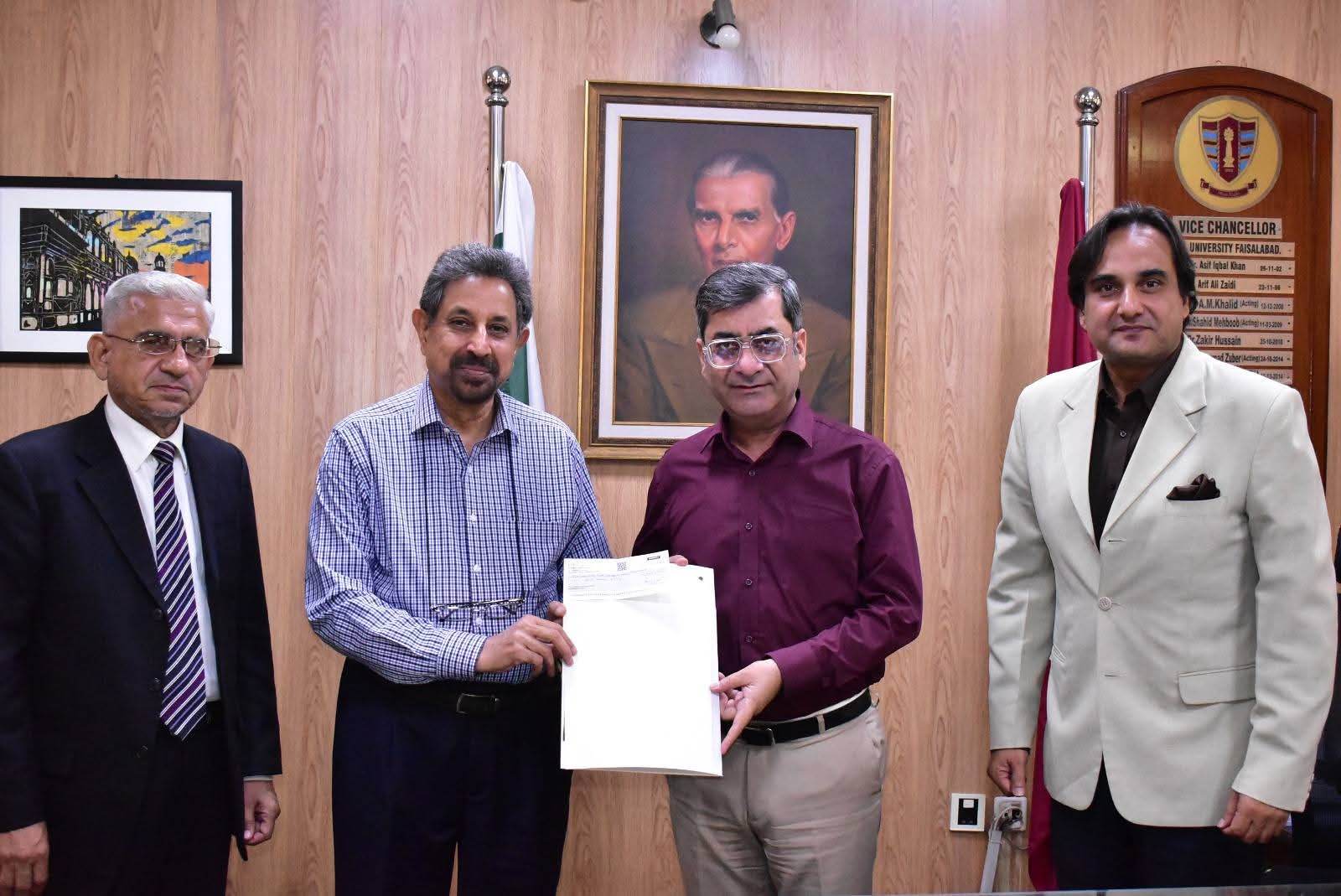 A delegation of Government College University Faisalabad alumni met with the Vice Chancellor and offered additional donations for the construction of the Community School