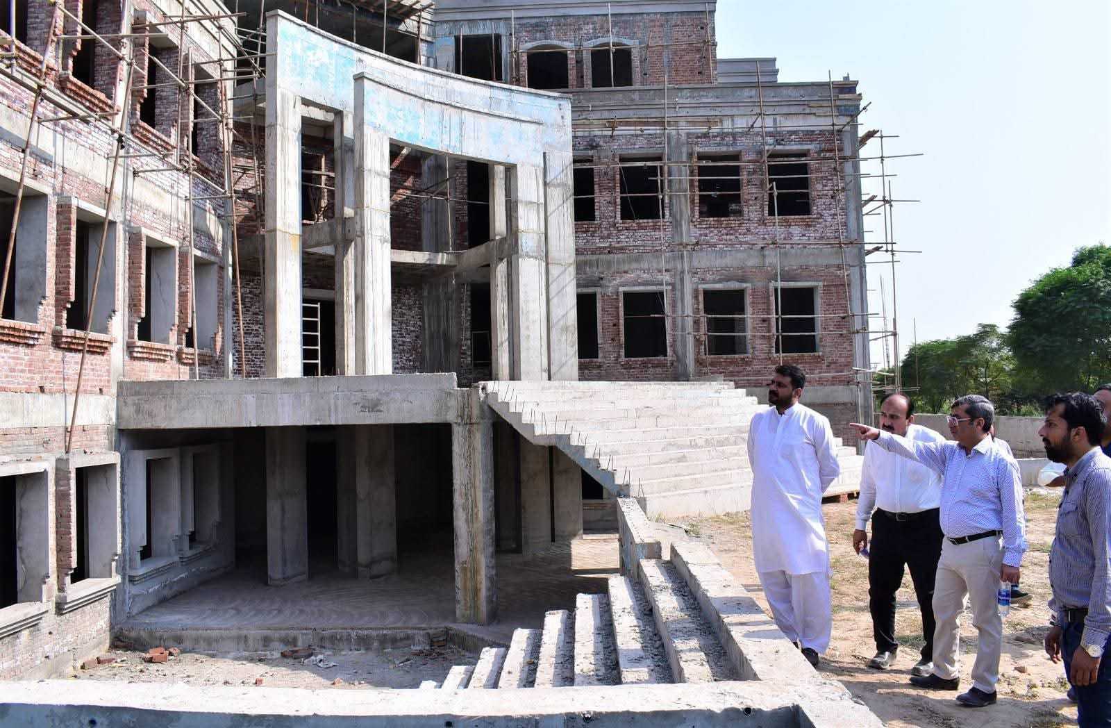 Vice Chancellor of Government College University Faisalabad visits development projects at the new campus. Issued instructions to complete work on time with quality.
