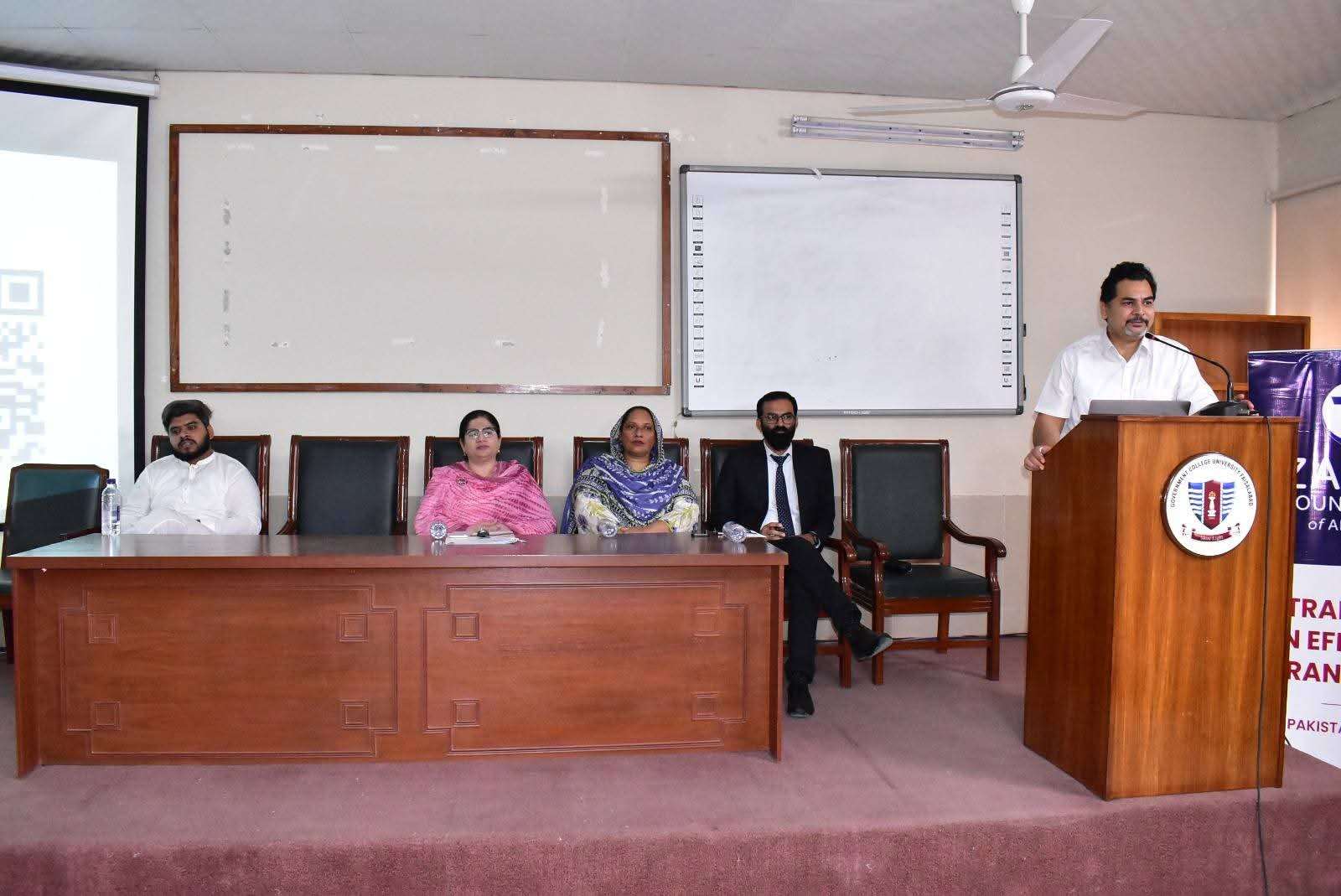 The training was led by Dr. Mohsin Zahid, a renowned academic, corporate trainer, and representative of ZFA Pakistan, who has conducted over 600 training sessions across Pakistan and abroad. Mr. M. Fahad Khalid, representing ZFA Pakistan, shared the ZFA’s mission to empower youth through education and career-oriented initiatives. The event was coordinated by Prof. Dr. Sofia Anwar, Ms. Saima Parveen, and Dr. Ghulam Mustafa, and attended by around 120 students.