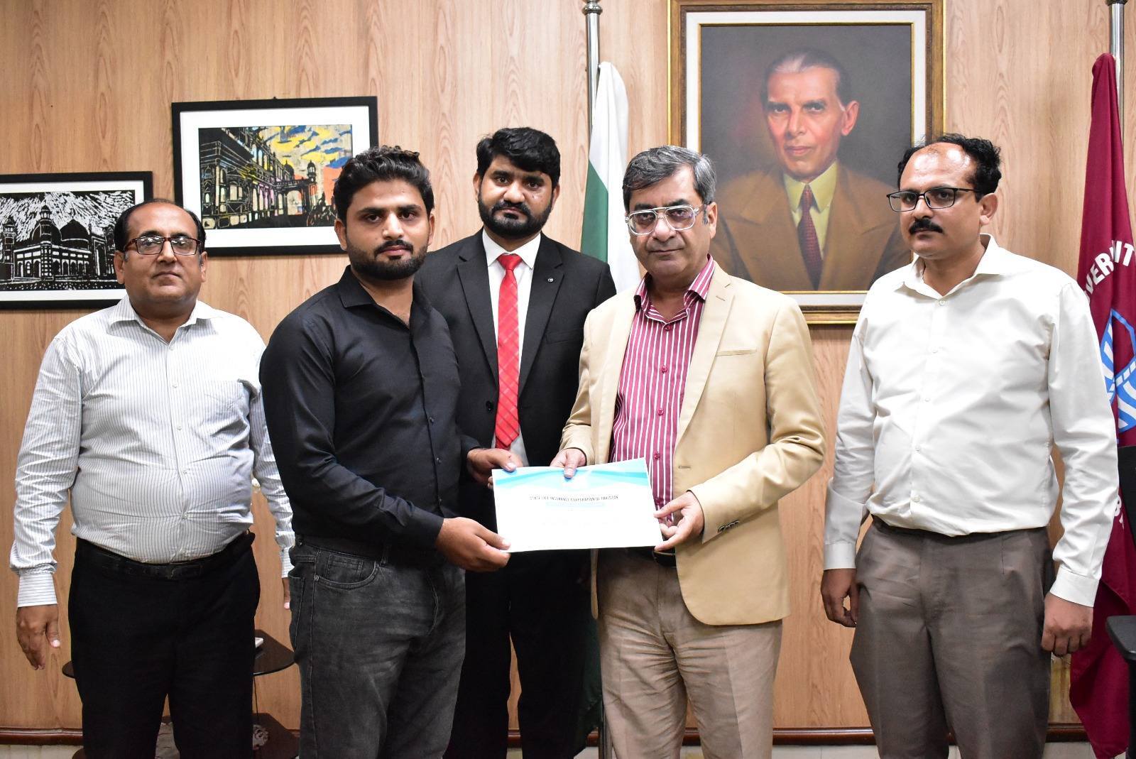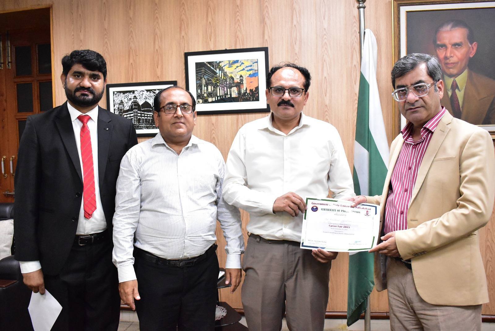 Government College University Faisalabad hosted Career Fair 2025, where the Vice Chancellor, Prof. Dr. Rauf-i-Azam, distributed certificates to students who successfully completed a one-week professional training program at State Life Insurance Corporation of Pakistan.