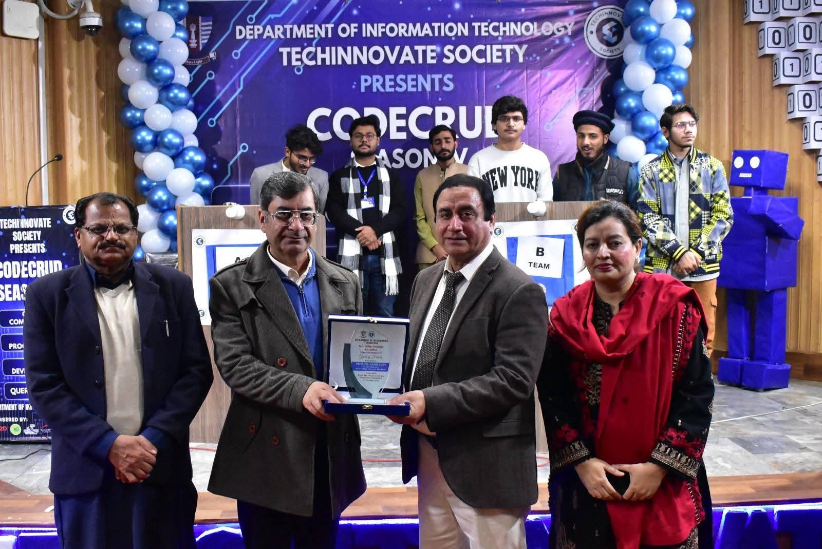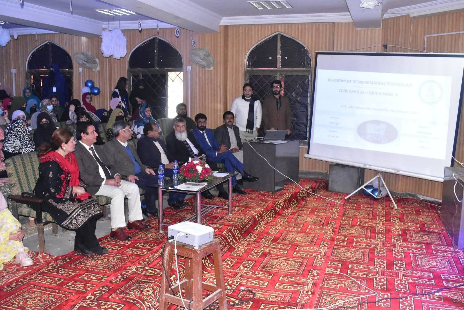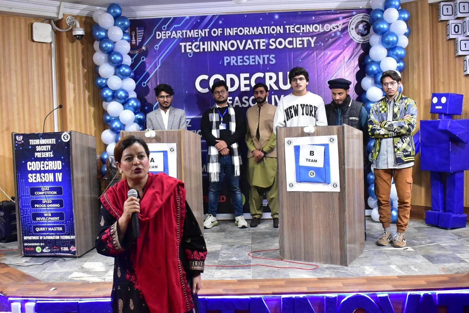 The Department of Information Technology, Government College University Faisalabad, successfully organized CODECRUD Season IV, its annual flagship competition held for the fourth consecutive year. The event featured multiple competitive activities, including a quiz competition, speed programming, Query Master, and web designing, aimed at enhancing students’ technical and analytical skills.