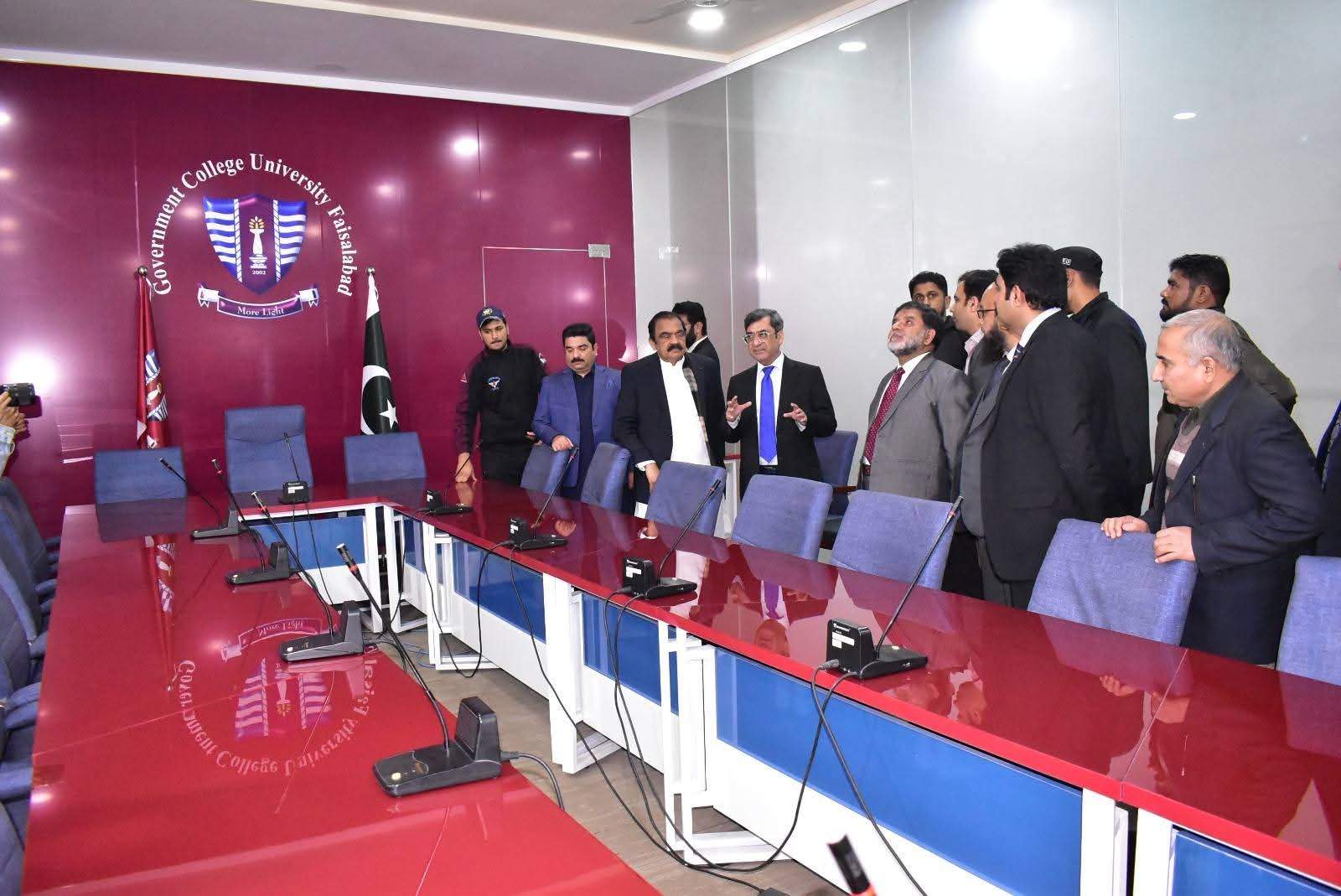 The Vice Chancellor, Prof. Dr. Rauf-i-Azam, accompanied him during the visit. Senator Rana Sana Ullah Khan appreciated the overall performance, academic progress, and infrastructural development of GCUF. He particularly emphasized the importance of modern e-library facilities and highlighted the need to promote a strong reading culture among the youth to enhance learning and research capabilities.