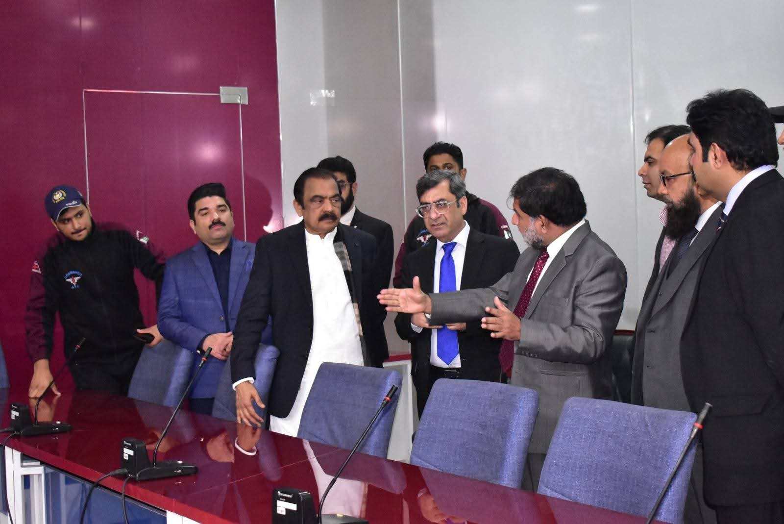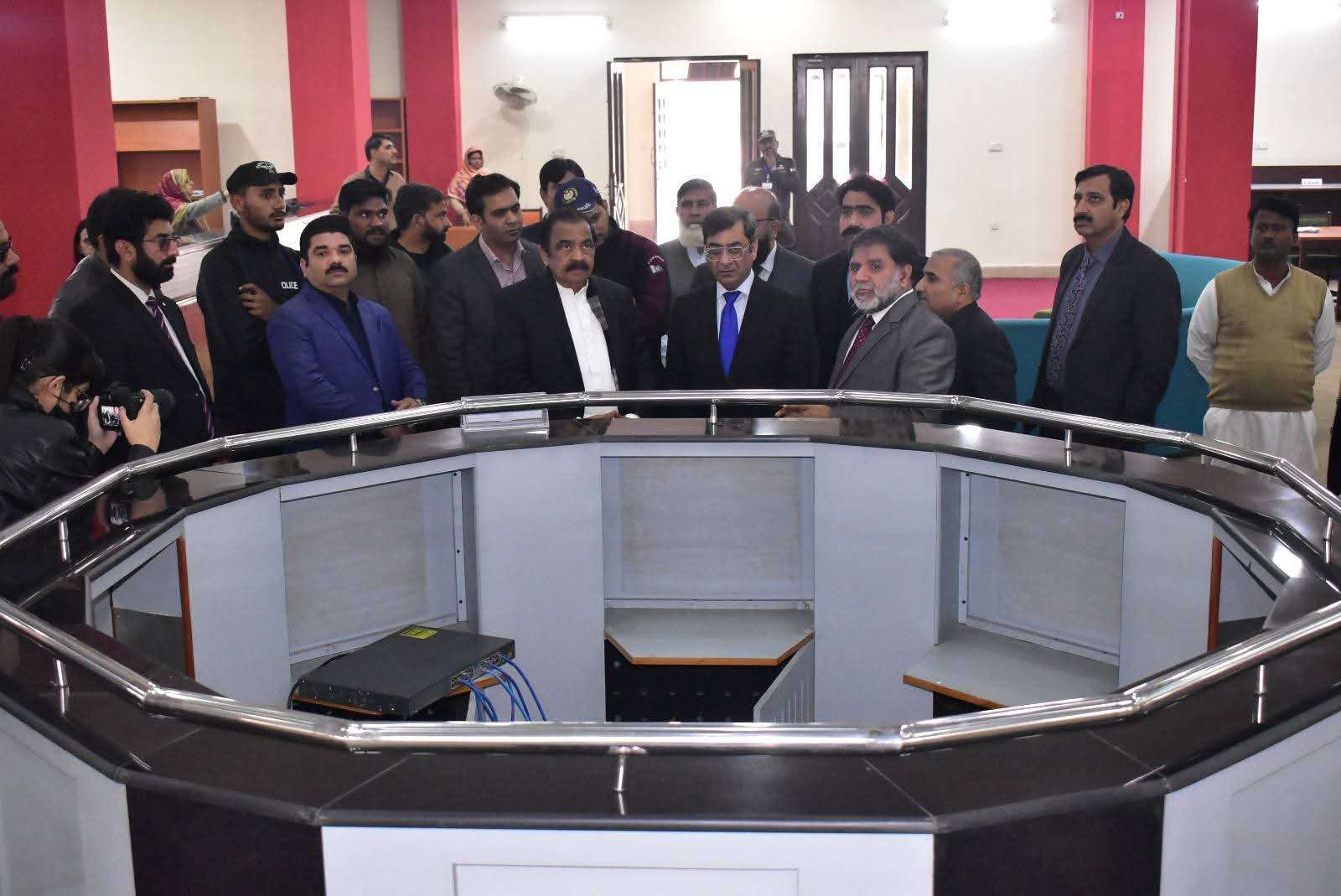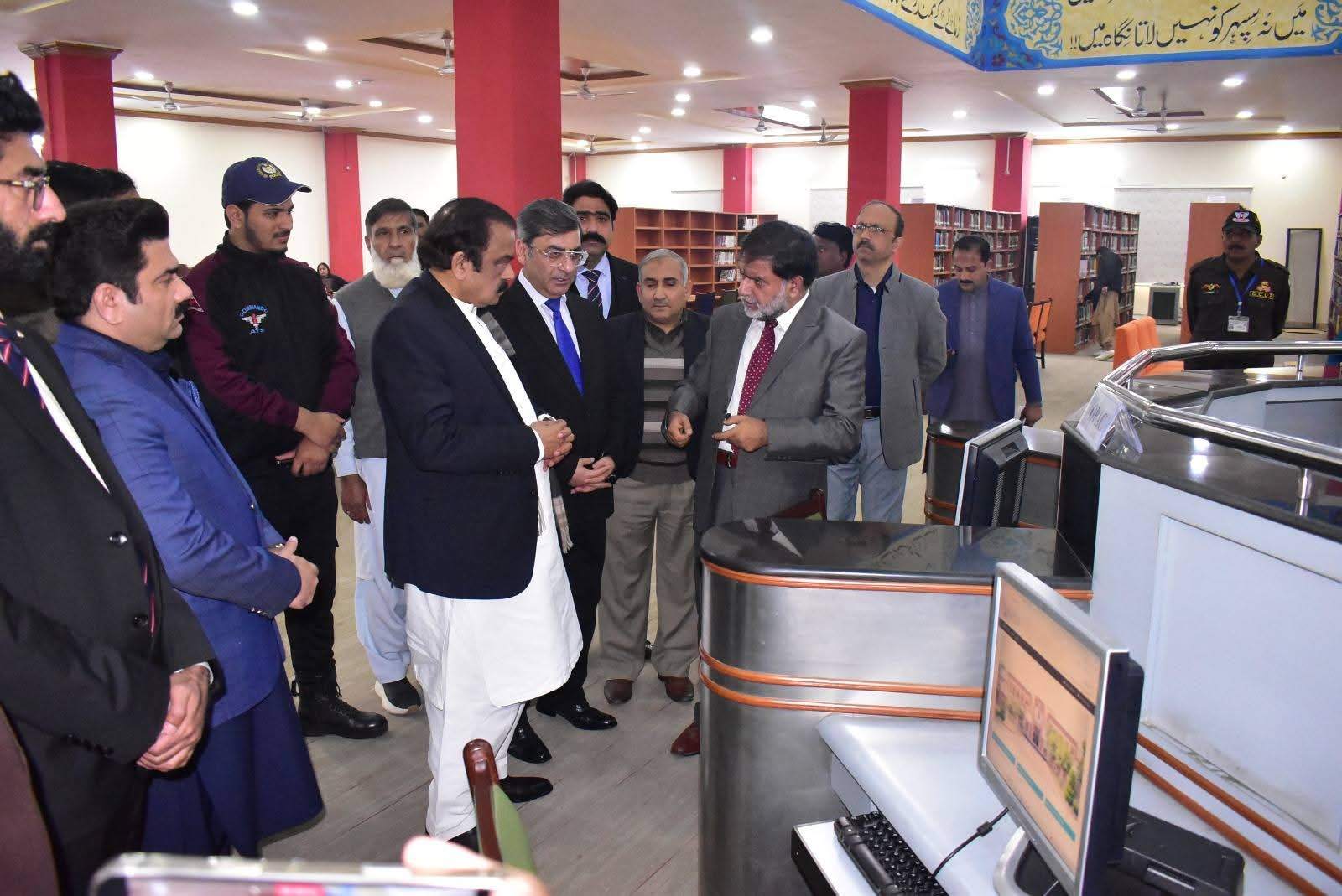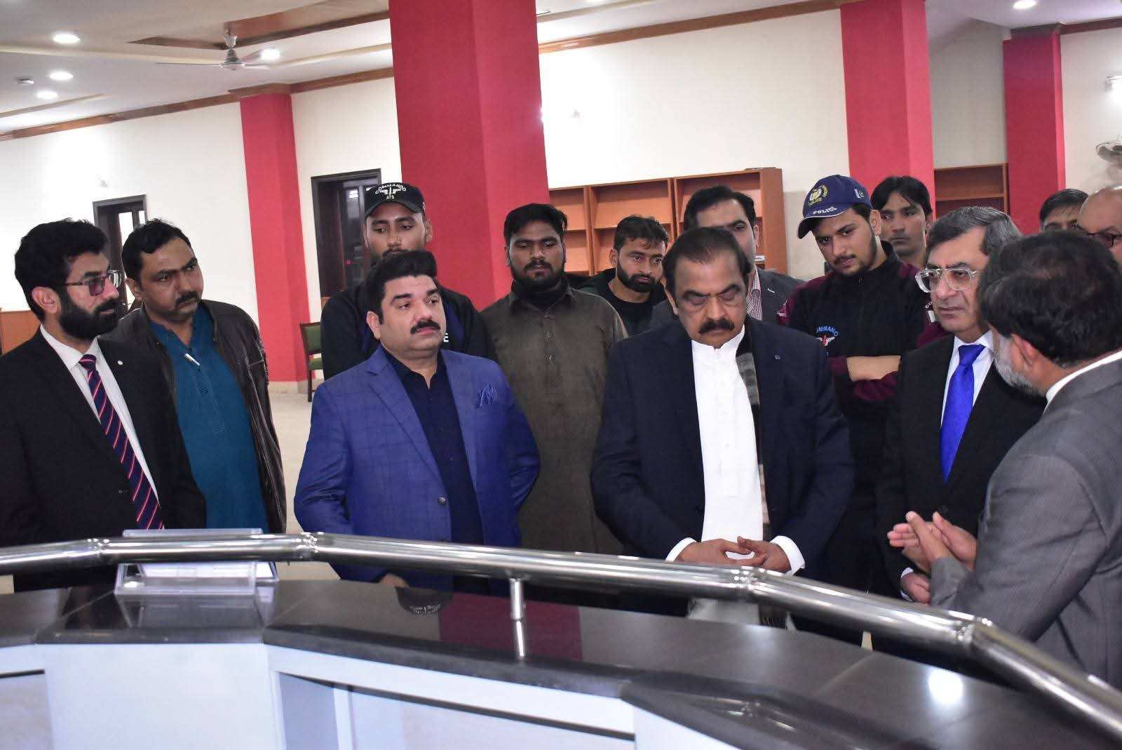 Federal Minister for Inter-Provincial Coordination, Senator Rana Sana Ullah Khan, visited the Allama Iqbal Library at the New Campus of Government College University Faisalabad
