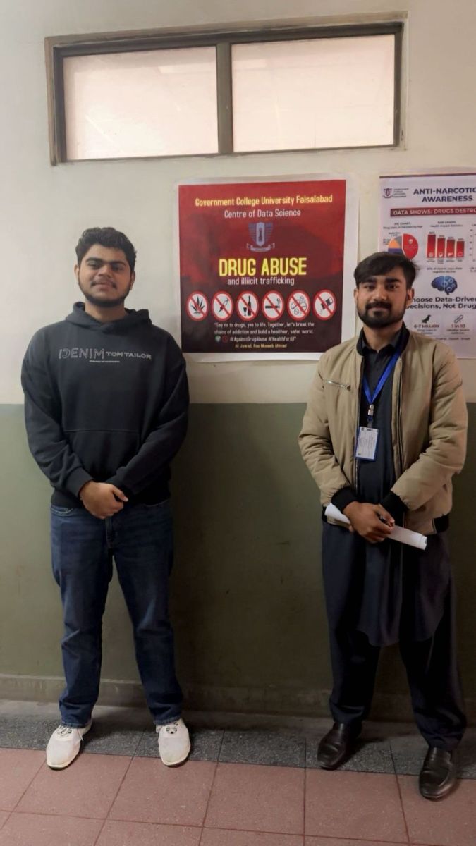 The Center of Data Science successfully organized a poster competition on the theme “Anti-Narcotics” to create awareness among students about the harmful social, psychological, and health effects of drug abuse. Students enthusiastically participated by designing creative and informative posters promoting prevention, awareness, and a drug-free society. The activity was conducted under the supervision of Director Dr. Tanvir Ahmad, with guidance from Student Advisor Ms. Rabia Shahid and the support of faculty members, contributing to the overall success of the activity.