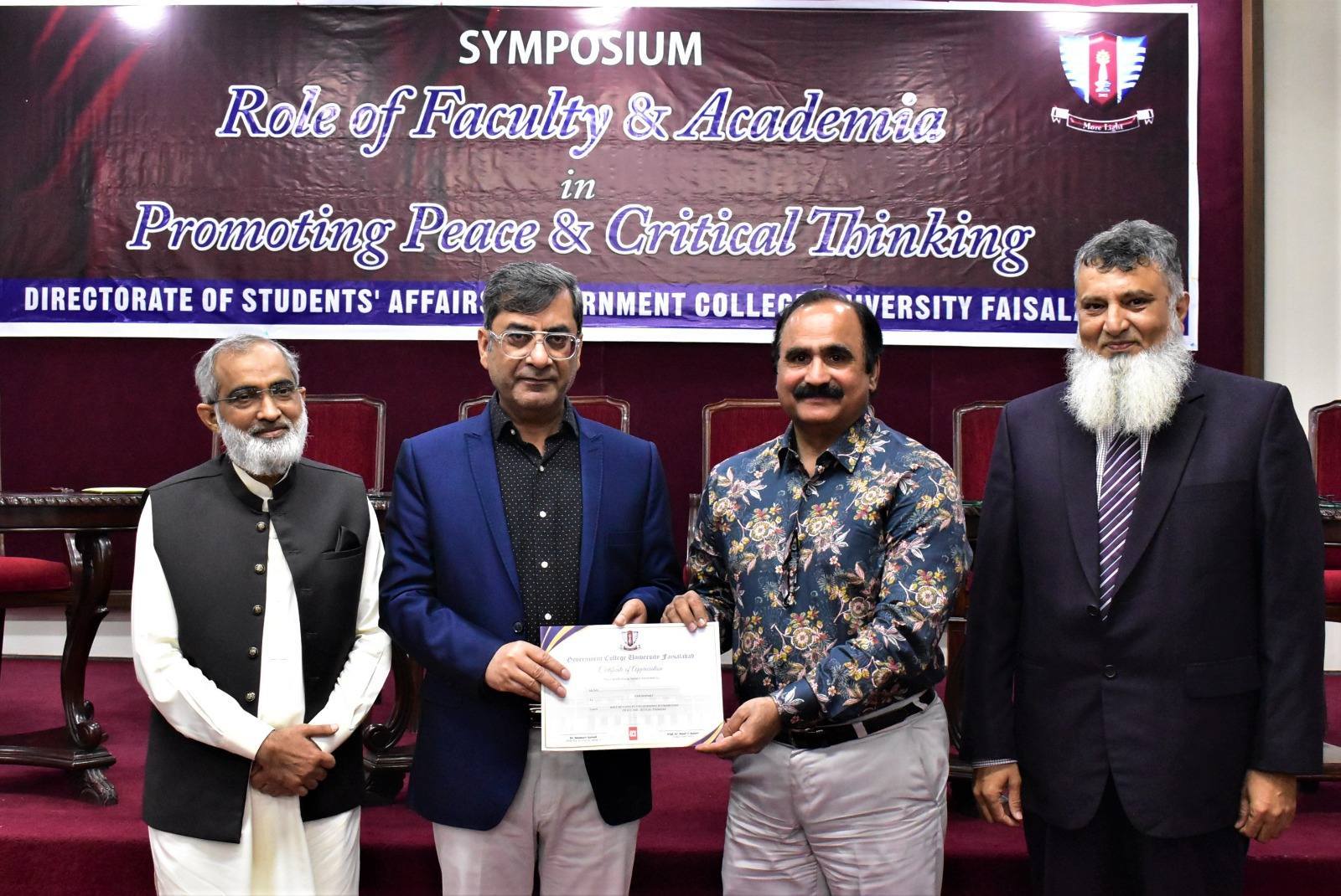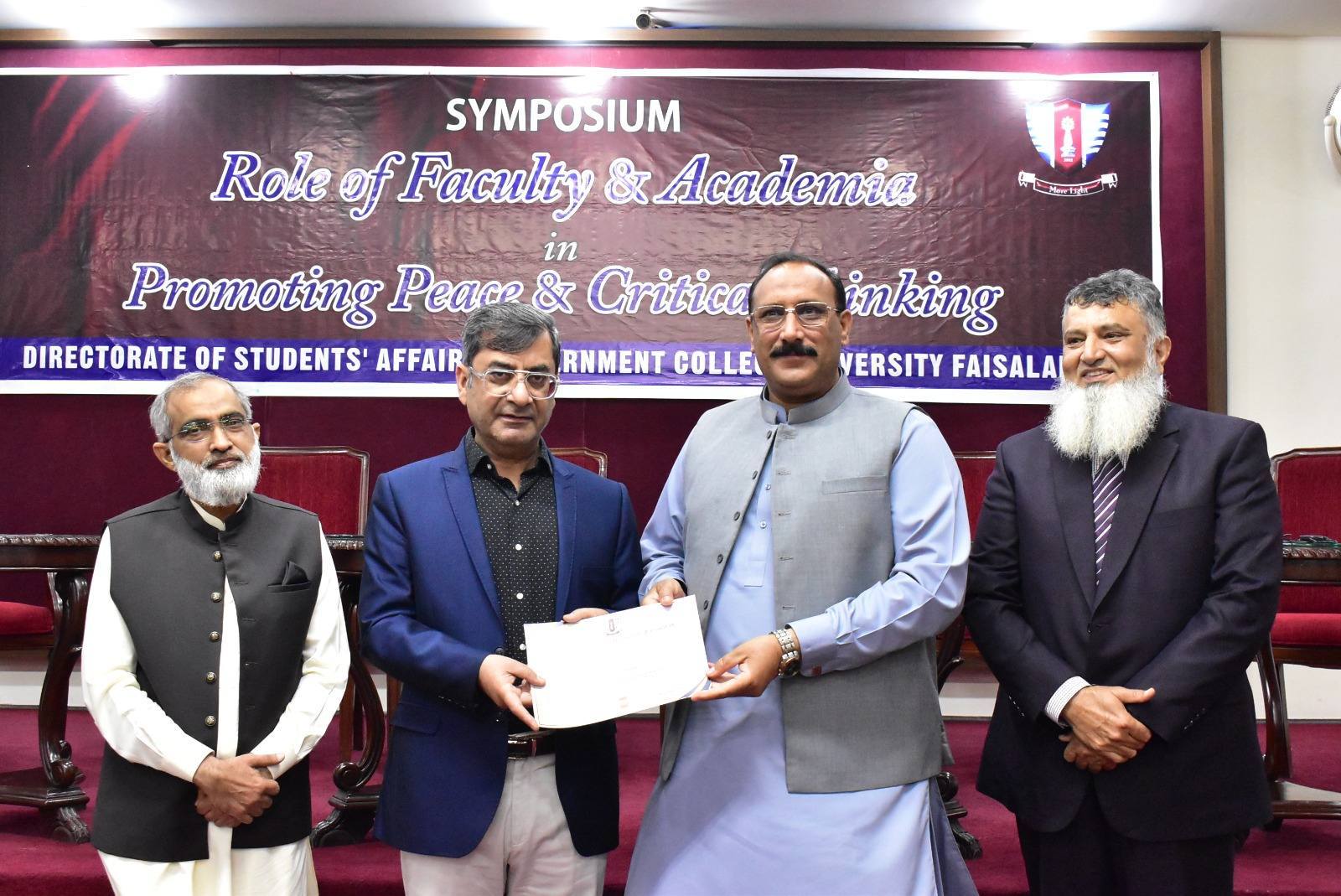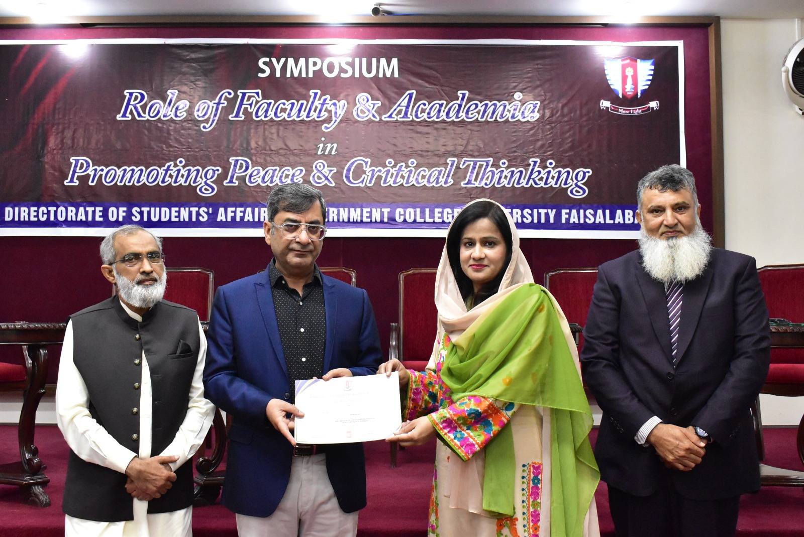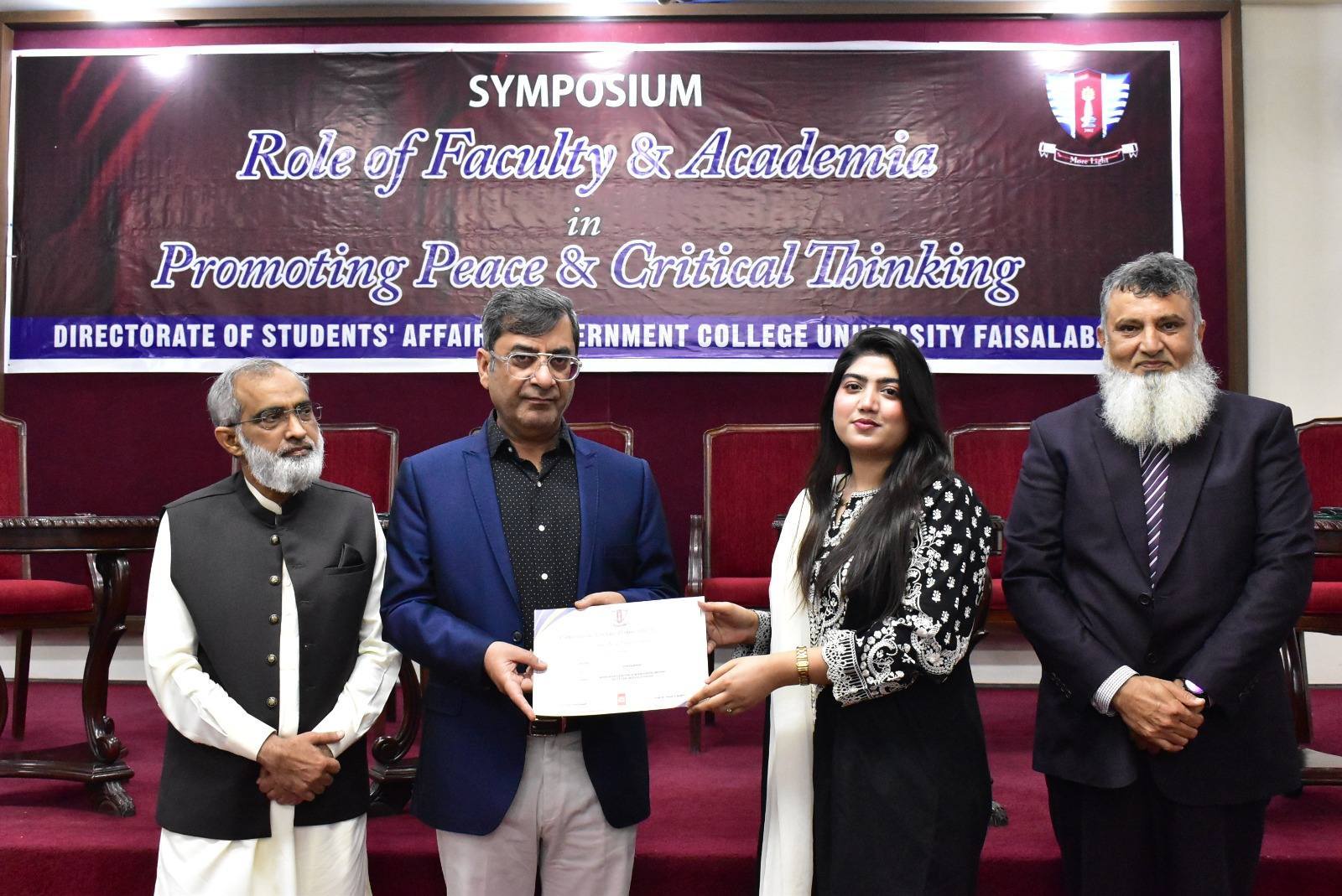 The Directorate of Students’ Affairs at Government College University Faisalabad organised a symposium titled “The Role of Faculty and Academia in Promoting Peace and Critical Thinking” to highlight the responsibility of educational institutions in fostering a culture of dialogue and tolerance.