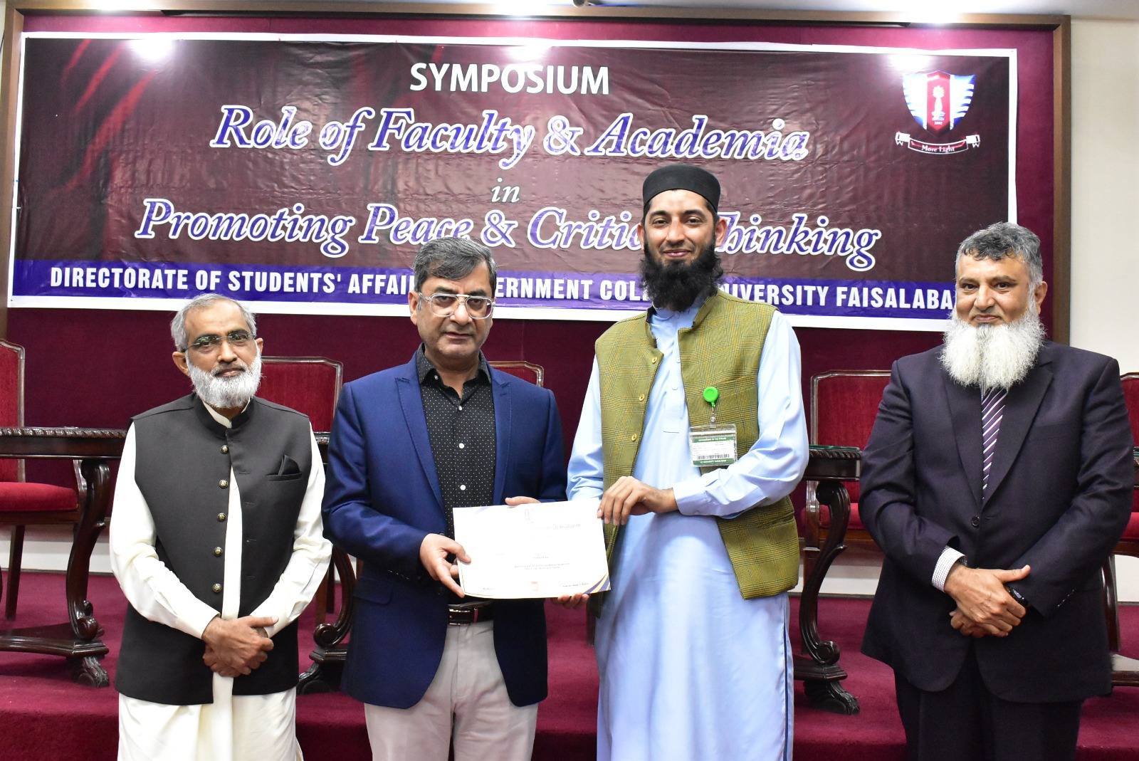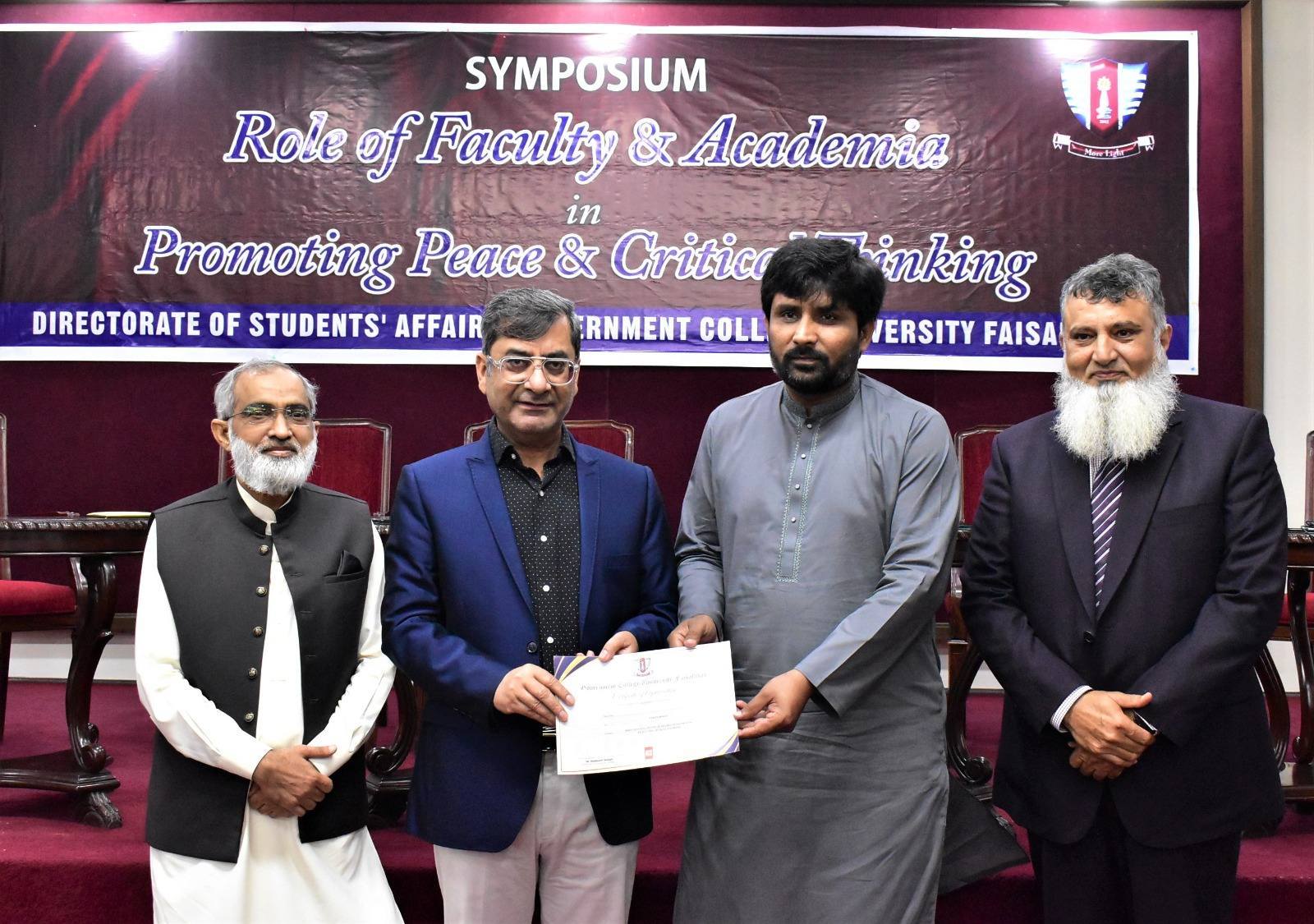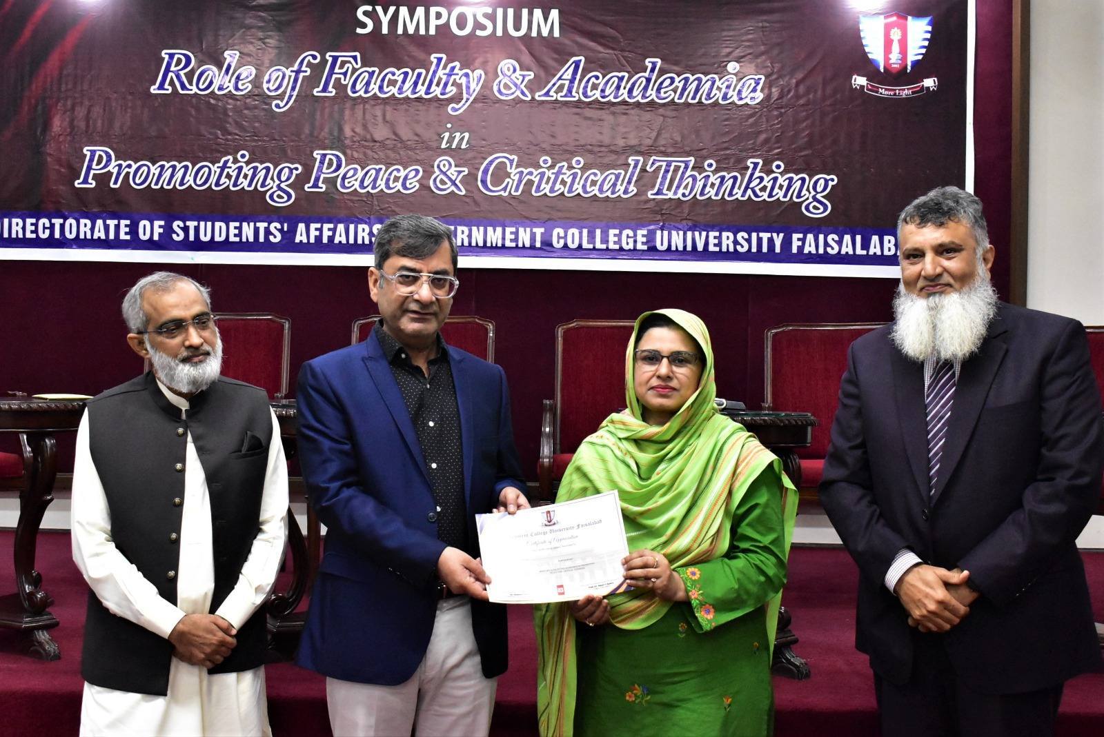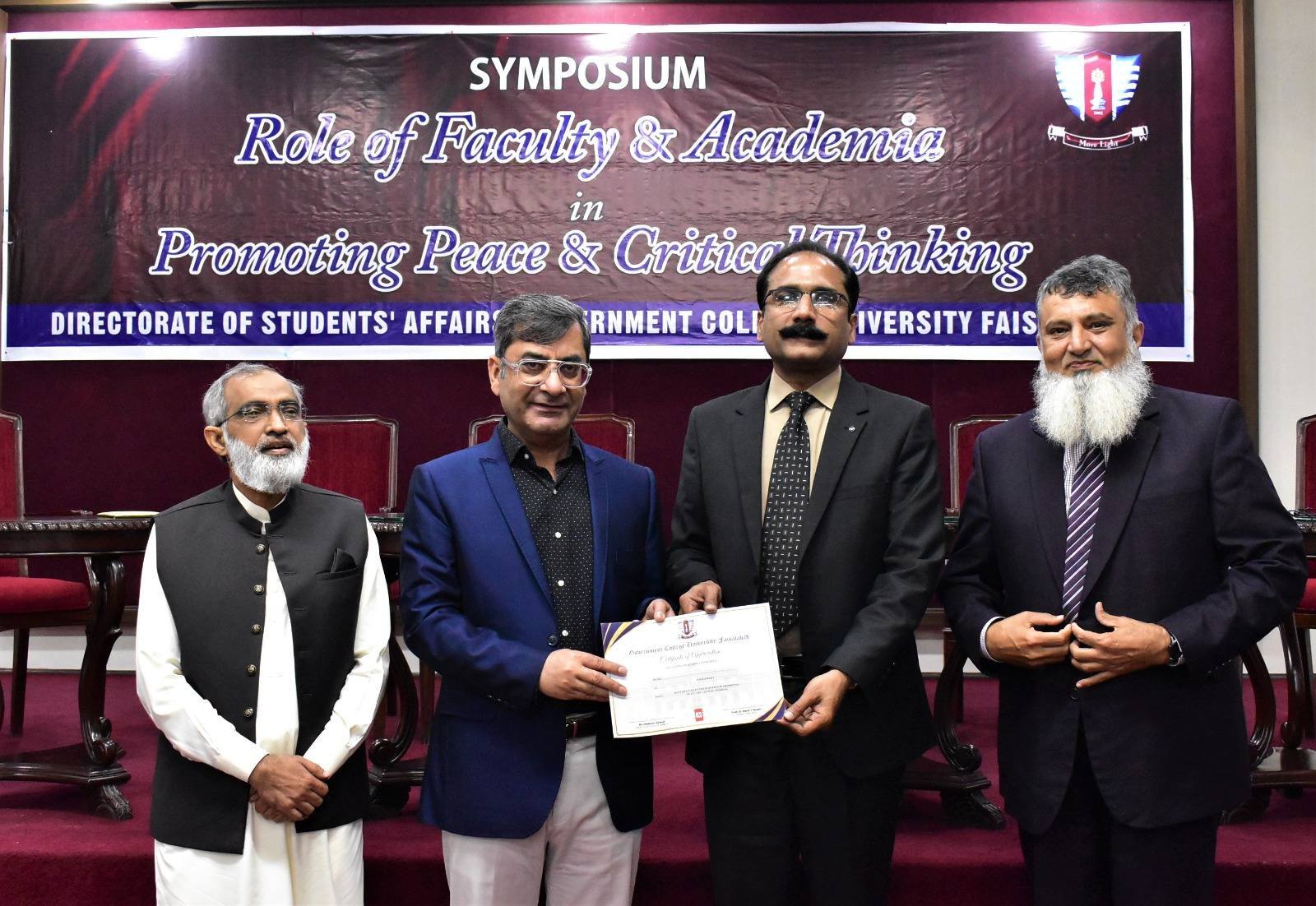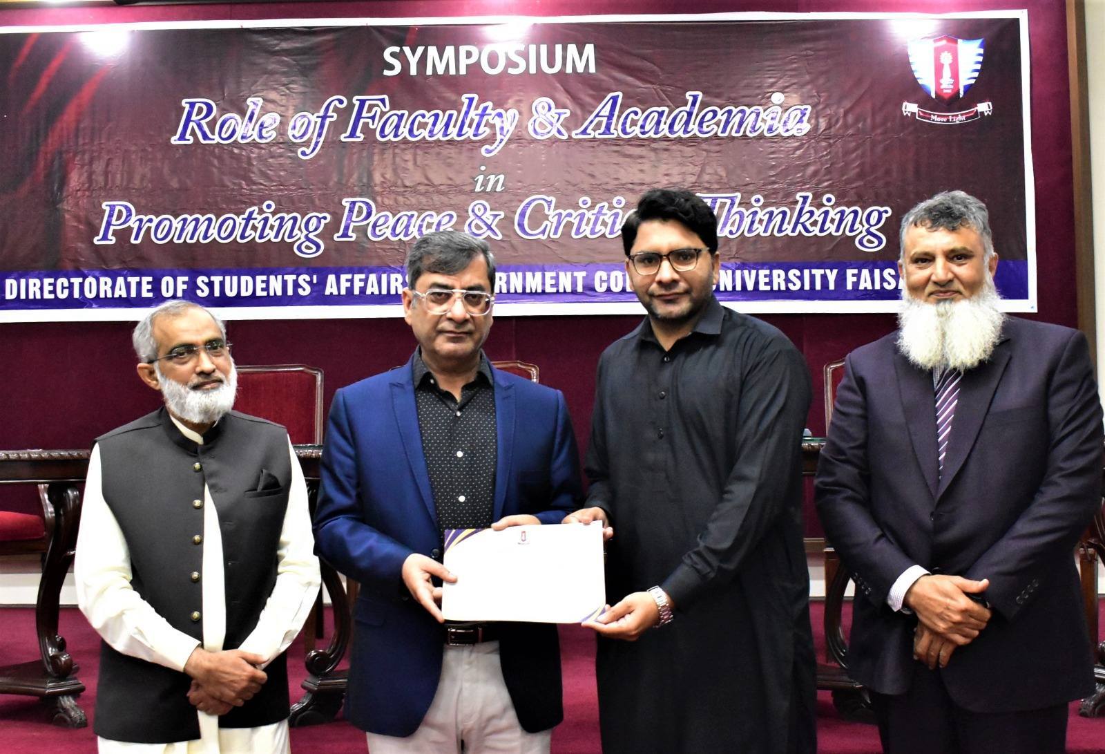 The Directorate of Students’ Affairs at Government College University Faisalabad organised a symposium titled “The Role of Faculty and Academia in Promoting Peace and Critical Thinking” to highlight the responsibility of educational institutions in fostering a culture of dialogue and tolerance.