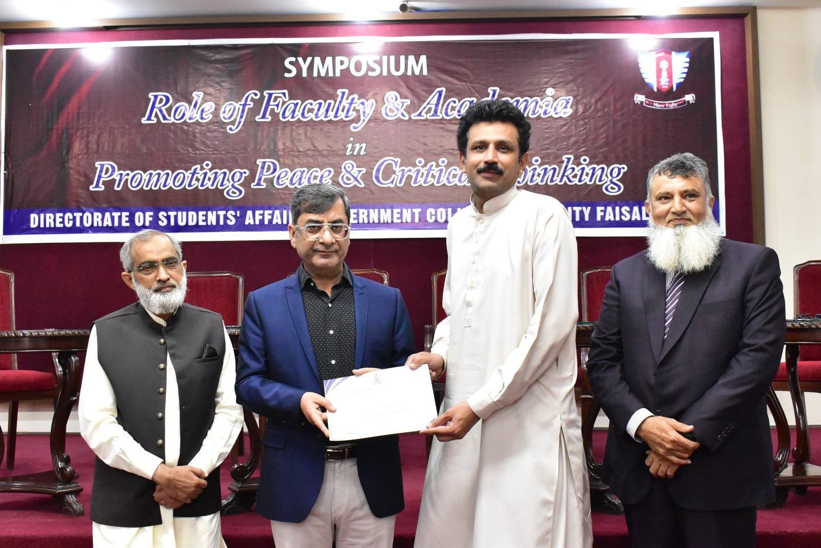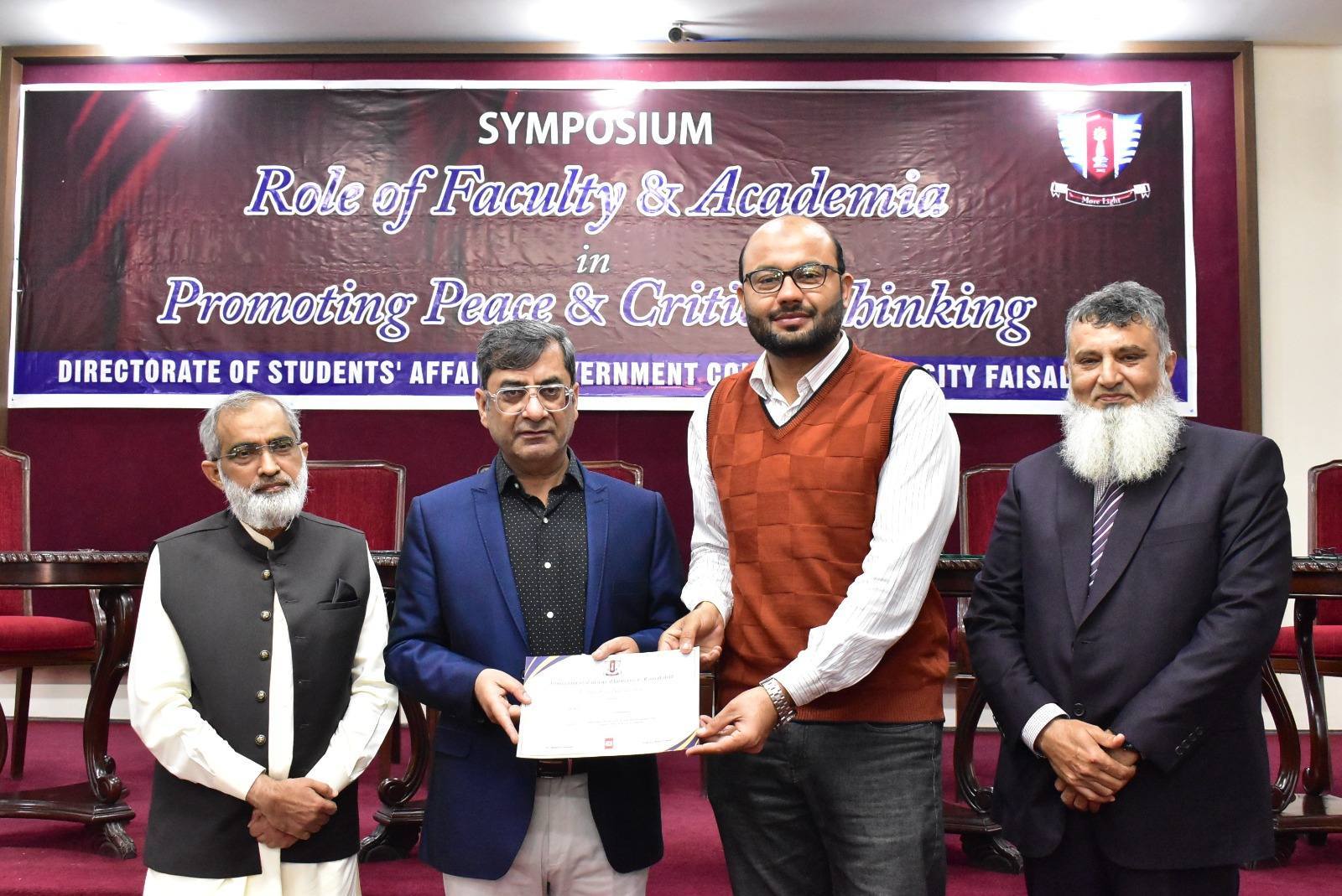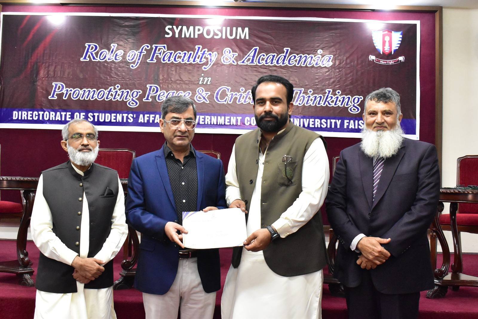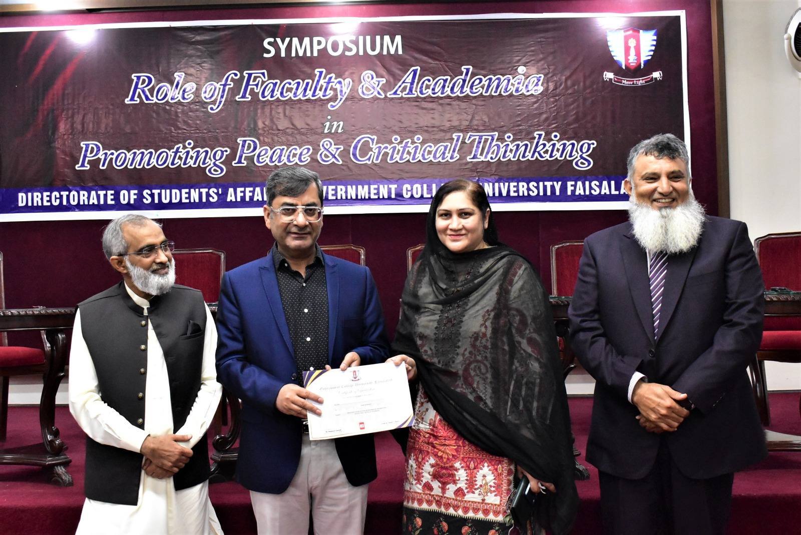The Directorate of Students’ Affairs at Government College University Faisalabad organised a symposium titled “The Role of Faculty and Academia in Promoting Peace and Critical Thinking” to highlight the responsibility of educational institutions in fostering a culture of dialogue and tolerance.