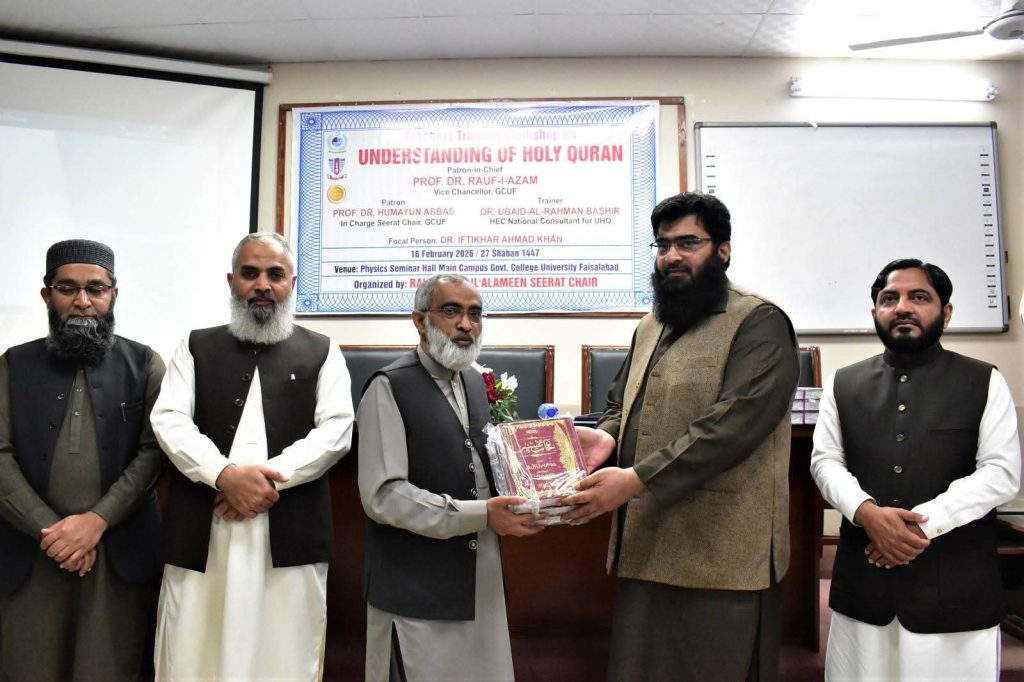 Fahm-e-Quran Workshop Held at Government College University Faisalabad; Experts Emphasize Strengthening Teachers’ Connection with the Holy Quran A grand workshop titled “Fahm-e-Quran” was organized for teachers under the auspices of the Rahmat-ul-Alameen Seerat Chair at Government College University Faisalabad. The purpose-driven academic session was presided over by Professor Dr. Humayun Abbas Shams, Dean of the […]